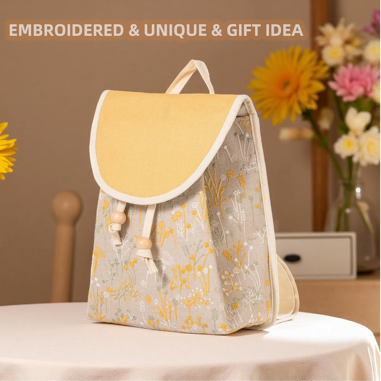 Floral Embroidered Backpack Purse for Women Small Travel Handbag Shoulder Bag Daypack