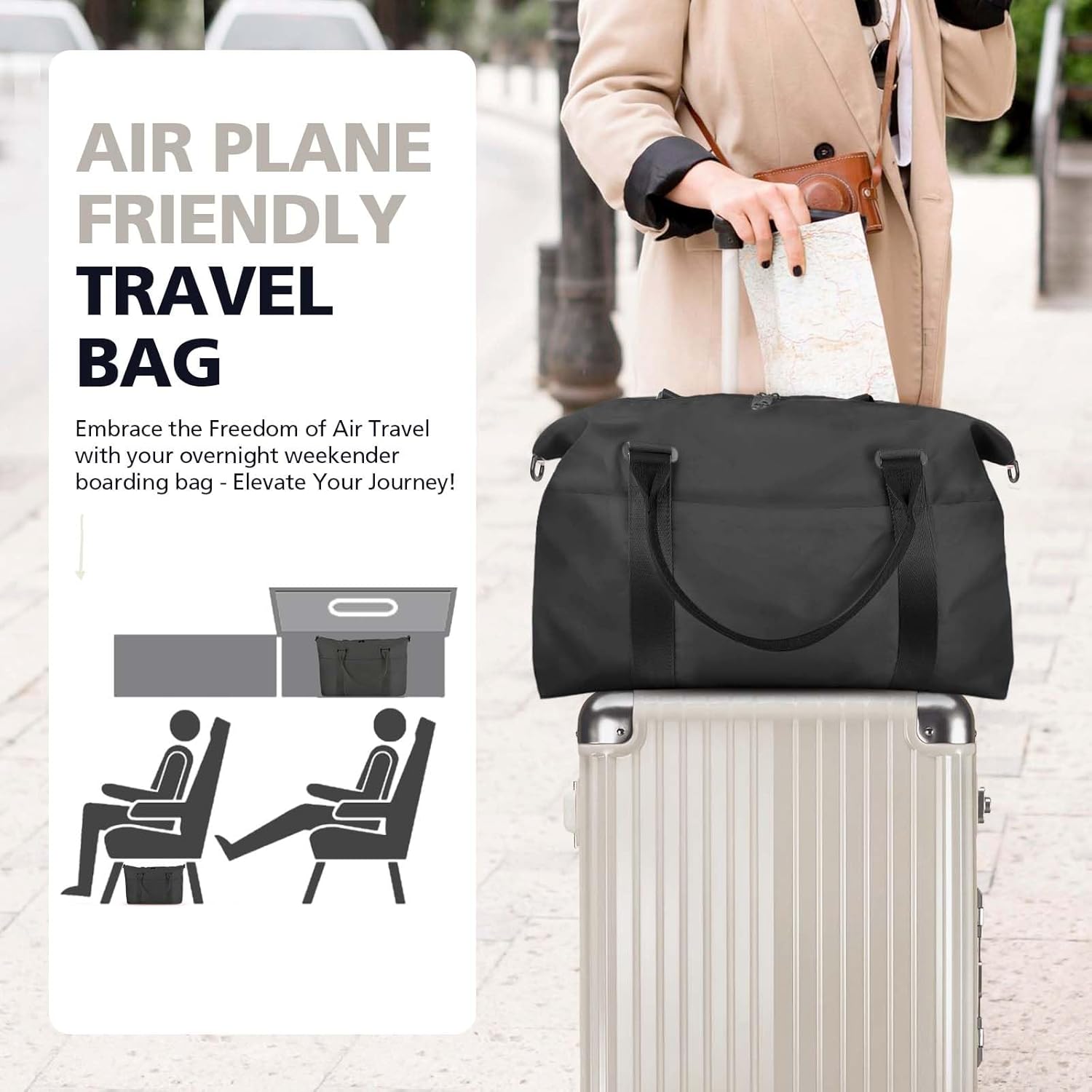• 【Airplane Friendly Travel Bag】Dimensions of the large handbag are 47.2 x 36.1 x 22.15 cm / 18.5 x 14.2 x 8.5 inches, with a weight of 0.6 kg / 1.3 lbs. This weekender bags for women travel is perfect for carrying on board during air travel. Keeping your valuable items and important documents with you ensures their protection throughout the flight. You don’t have to worry about your luggage getting lost, damaged, or stolen during the checked baggage process.